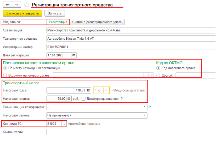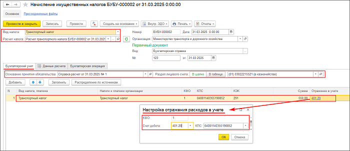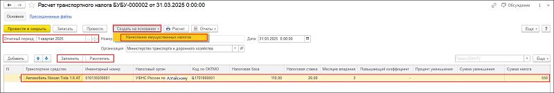 Как отразить начисление транспортного налога в 1С:БГУ?
