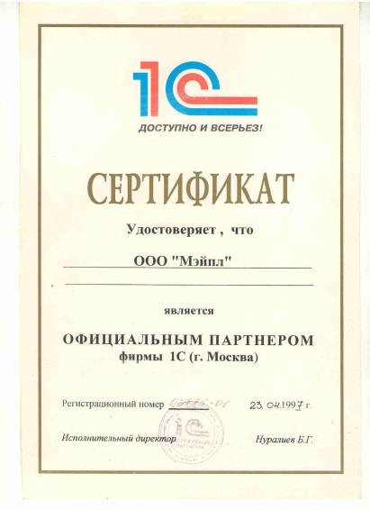 Заключен партнерский договор 1С:Франчайзинг с Фирмой 1С ( г. Москва)
