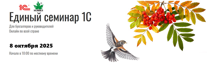 Приглашаем вас на Единый семинар 1С, который пройдет 8 октября 2025 г. в 10:00 ч по местному времени (регион Алтайский край). Единый семинар 1С пройдёт в формате общефедеральной трансляции с методистами и экспертами фирмы "1С"!