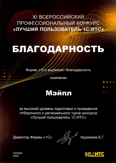 11 всероссийский конкурс стал особенным для нашей Компании. Фирма «1С» высоко оценила вклад сотрудников «Компании Мэйпл» в развитие и поддержку конкурса на территории Алтайского края, в качестве благодарности и поощрения мы получили приглашение на участие в финале. Всего было приглашено 5 представителей партнерских организаций, занявших первые места в рейтинге партнеров организаторов регионального тура.
