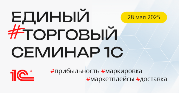 28 мая 2025 г. в 10:00 ч по московскому времени пройдет бесплатный Единый торговый семинар 1С. Семинар будет полезен всем, кто отвечает за продажи, их цифровизацию и стимулирование. Участники семинара получат уникальную возможность за короткое время узнать все самое важное, что происходит в сфере торговли.