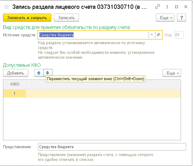 При необходимости можно создать новый или отредактировать существующий документ. При двойном нажатии откроется форма, где необходимо выбрать Источник средств и добавить КФО, после чего сохранить все изменения.