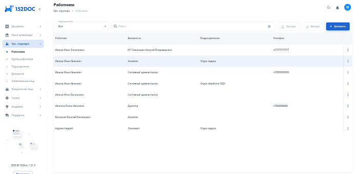 - Загрузка списков сотрудников для быстрого заполнения документов;