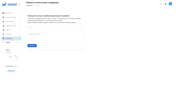 С помощью раздела «Поддержка» можно написать обращение в техническую поддержку.