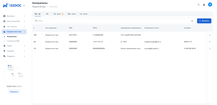 В разделе «Юридические лица» заполняется информация о контрагентах и сторонних ИСПдн.
