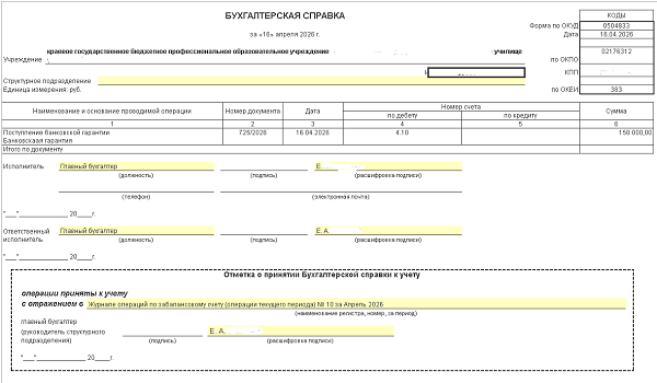 Рассмотрим на примере бюджетного учреждения, как отразить получение и выбытие банковской гарантии в 1С:БГУ 2.0.