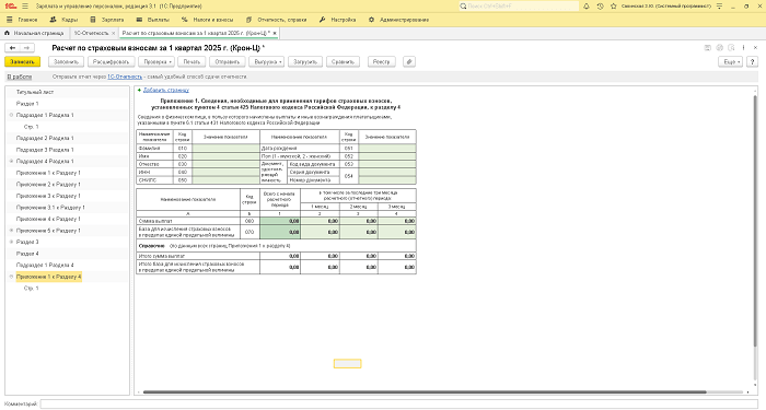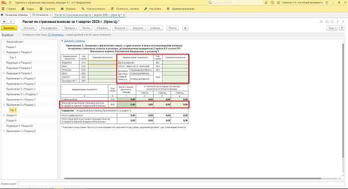 Все описанные изменения в расчете страховых взносов представлены пользователям в версиях 1С:ЗУП и 1С:ЗГУ 3.1.116 и 3.1.67. Новую форму расчета по страховым взносам с учетом всех изменений и новшеств необходимо сдавать, начиная с отчетности за первый квартал 2025 года и не позднее 25.04.2025. Подготовить обновлённый отчёт можно с помощью сервиса «1С-Отчетность».