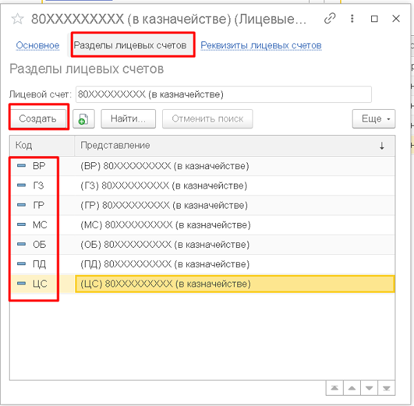 Если в документах «Регистрация обязательств и сведений по договорам», «Плановые назначения» и других документах при принятии отложенных и денежных обязательств был указан «Раздел лицевого счета», то необходимо выполнить следующие действия: