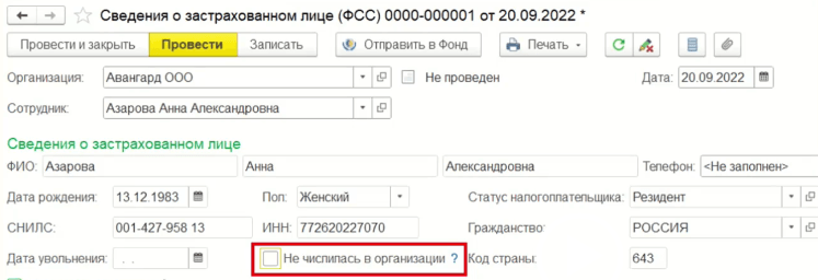 Если в сведениях о застрахованном лице допущена любая ошибка, кроме ошибки в номере СНИЛСа, то нужно сформировать новые сведения и отправить. Если допущена ошибка в номере СНИЛС, то нужно повторно отправить сведения с некорректным СНИЛС, включив при этом флажок «не числился в организации». После этого нужно исправить СНИЛС в карточке сотрудника, далее сформировать и отправить сведения, только уже без включенного флажка «не числился в организации».
