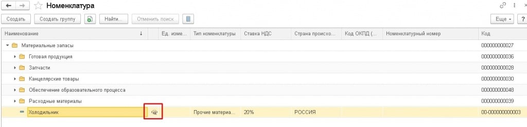 А в справочнике «Номенклатура» прослеживаемый товар теперь отображается специальным значком.