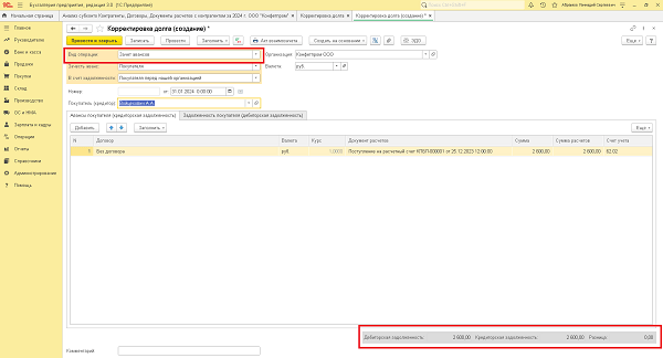 Если период, в котором возникло развернутое сальдо закрыт и перепровести документы не представляется возможным, для исправления ошибки текущим периодом можно использовать документ «Корректировка долга» (Раздел «Покупки» - «Расчеты с контрагентами» – «Корректировка долга»).