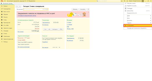Разберем ситуацию на примере программы 1С:Бухгалтерия Предприятия 3.0, который был смоделирован на релизе 3.0.153.21. На момент подготовки материала это последний релиз. Для того чтобы посмотреть релиз вашей программы, перейдите в меню «Сервис и настройки» - «О программе».