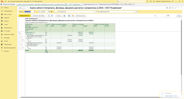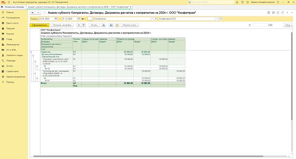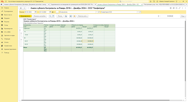 По нашему примеру, развернутое сальдо образовалось из-за нарушения последовательности проведения документов. То есть сначала провели поступление услуг, после чего банковскую выписку задним числом. Поэтому после перепроведения документа поступления развернутое сальдо «закроется» и отчет больше не будет выдавать задолженности.
