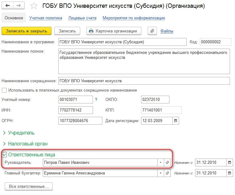 Покажу на примере, как внести изменения для корректного отображения данных об ответственных лицах.