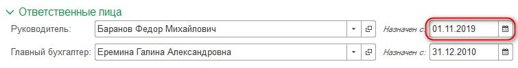 Для примера условимся – с 1 ноября обязанности первого лица исполняет Баранов Федор Михайлович и зарегистрируем эти сведения.
