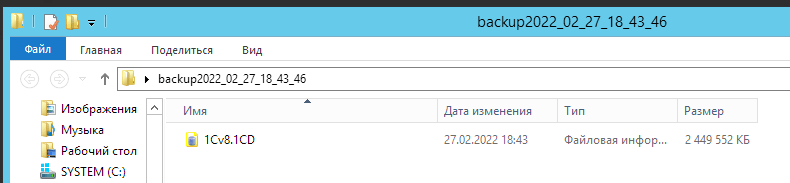 Создание резервной копии: выбираем папку, куда нужно выгрузить резервную копию и ждем завершения процесса. Программа принудительно завершит работу остальных пользователей в ИБ и начнет процесс копирования. В результате будет создана резервная копия базы с прописанными в названии датой и временем ее создания, чтобы в случае непредвиденных обстоятельств, вы смогли быстро определить, какая из имеющихся, требуется.