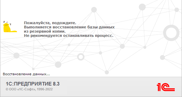 Восстановление из резервной копии: выбираем папку с нужной резервной копией и ждем завершения процесса. После запуска процедуры восстановления, сеансы всех пользователей будут завершены автоматически до окончания процесса, а затем восстановлены, и пользователи получат соответствующее уведомление. После завершения восстановления данных из резервной копии, программа автоматически перезапустится.