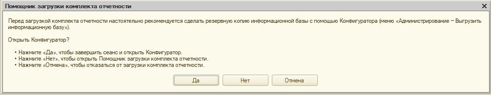 ВАЖНО: Перед обновлением комплекта отчетности нужно сделать архивную копию информационной базы!!!