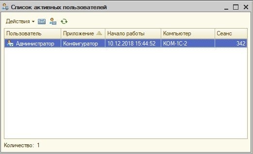 В списке должен быть только один пользователь, в графе Приложение указано Конфигуратор.