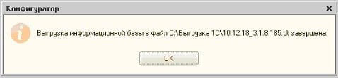 Присваиваем имя данной выгрузке и ждем пока система выдаст сообщение об успешном завершении операции.
