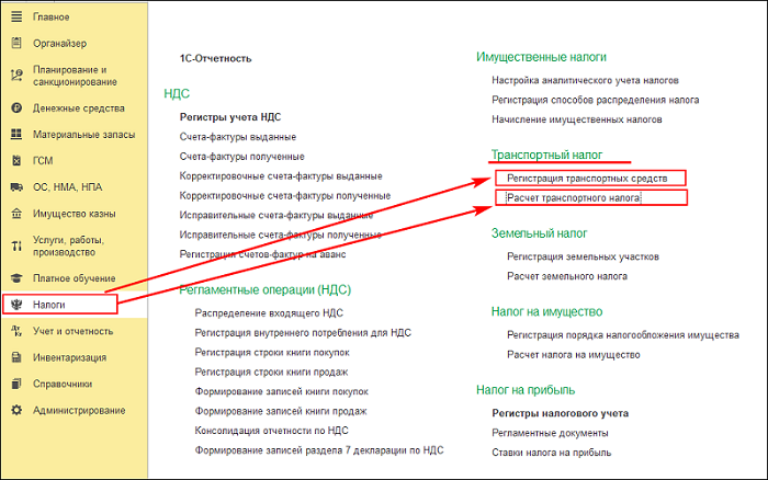 Как отразить начисление транспортного налога в 1С:БГУ?