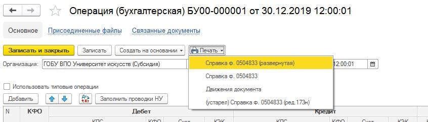 По кнопке печать можем распечатать бухгалтерскую справку.