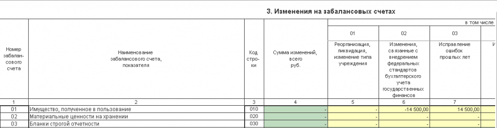 Информация об отражении (корректировке) данных по забалансовому счету 01 «Имущество, полученное в пользование» в части неисключительных прав на ПП подлежит отражению в разд. 3 «Изменения по забалансовым счетам» сведений в форме 0503773.