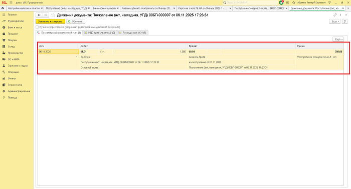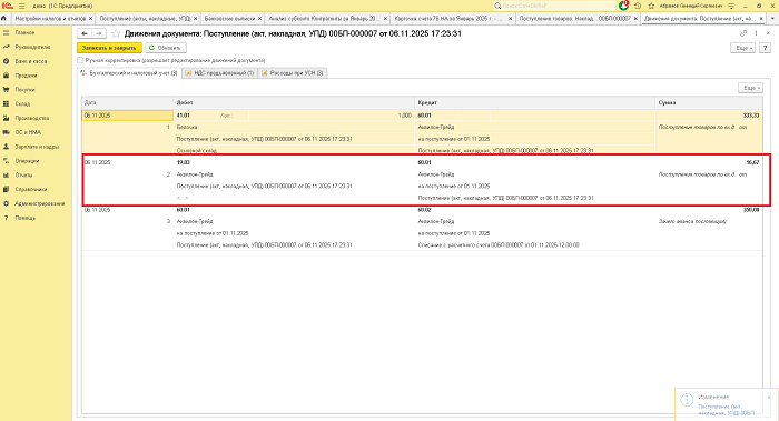 В зависимости от системы налогообложения, выбор данных настроек будет по-разному влиять на результат проведения документа: