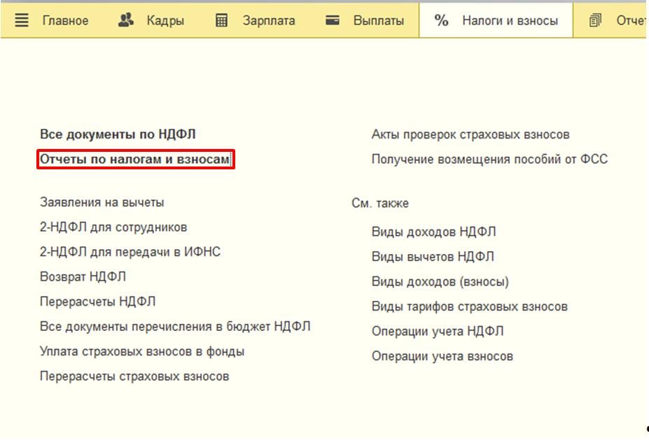 Он находится в разделе «Налоги» - «Отчеты по налогам и взносам».