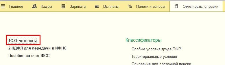 Данный отчет находится в разделе «Отчетность, справки» - «1С-Отчетность».