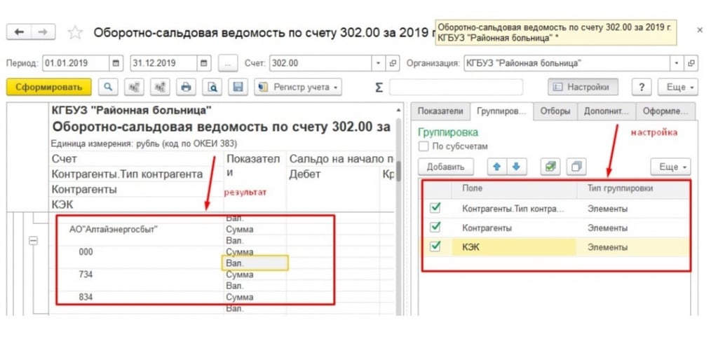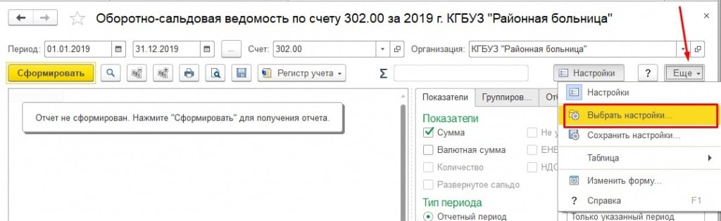 Давайте предположим, что нужно сформировать оборотно-сальдовую ведомость по счету 302 «Расчеты по принятым обязательствам». Отчет настроим таким образом, чтобы проверить правильность ведения на счете 302 по следующим критериям: