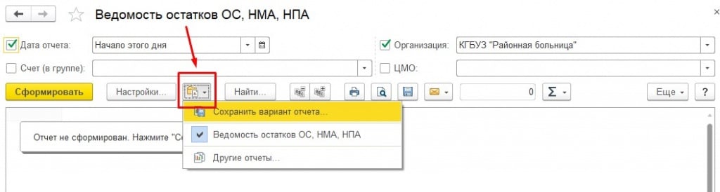 Для удобства пользователей в конфигурации «Бухгалтерия государственного учреждения редакция 2.0» предусмотрена возможность сохранения различных вариантов настроек отчета.