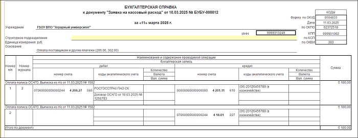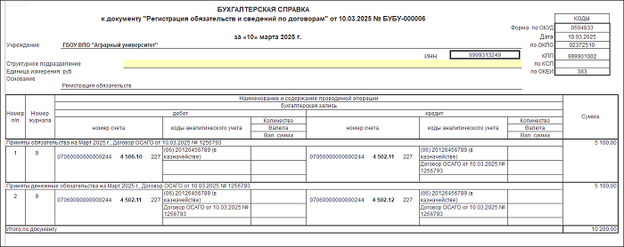Рассмотрим на примере бюджетного учреждения, как программе 1С:БГУ отразить расчеты по договору ОСАГО: