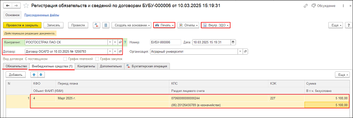 - Типовая операция: Регистрация обязательств;