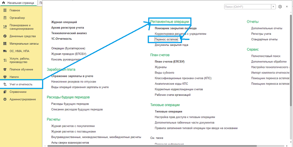 1. При переносе задолженности с неактуальных КПС на новые используются документы, находящиеся в журнале "Перенос остатков по КПС" ("Учет и отчетность" - "Регламентные операции" - "Перенос остатков").