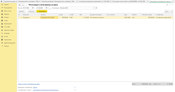 В соответствии с Федеральным законом № 28.11.2025 от 28.11.2025 теперь в отгрузочном счете-фактуре надо указывать порядковый номер и дату счета-фактуры, выставленного на полученный аванс. А также в соответствии с абз. 1 п. 6 ст. 169 НК РФ, если счет-фактуру выставляет ИП, то он подписывает его с указанием номера ОГРНИП и даты его присвоения. О том, как данные изменения реализованы в 1С, читайте в статье.