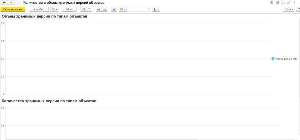 По гиперссылке Количество и объем хранимых версий объектов можно перейти к просмотру одноименного отчета.