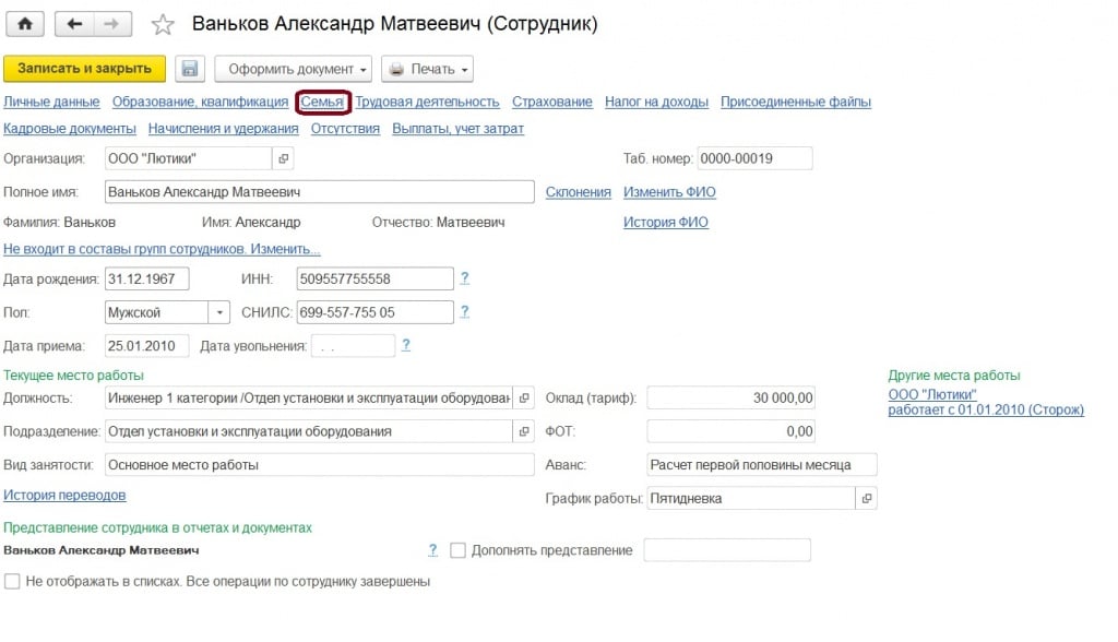 В программе "1С: Зарплата и управление персоналом 8, ред. 3.0" такая функция есть, поэтому пользователю достаточно заполнить в карточке сотрудника сведения о составе семьи.