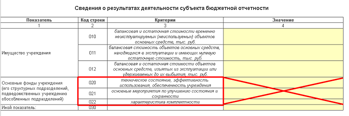 В Таблице № 12 "Сведения о результатах деятельности субъекта бюджетной отчетности" не заполняются строки 020 - 022 "Основные фонды субъекта отчетности (его структурных подразделений)".