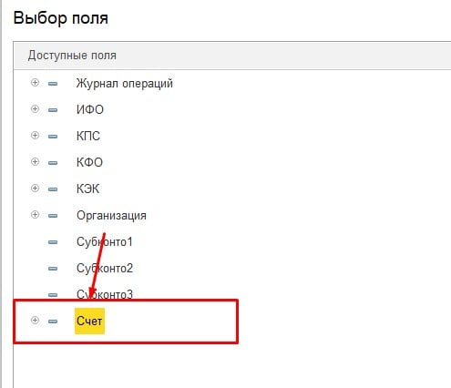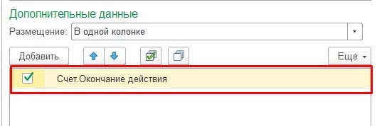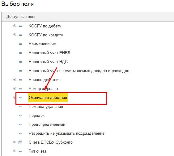 В предлагаемом списке находим «Счет», раскрываем его и выбираем поле «Окончание действия».