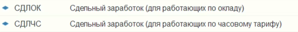 После включения этой настройки в списке начислений становятся доступны два уже преднастроенных вида начисления, которые могут быть назначены сотруднику как плановые начисления в кадровых документах. Это сдельный заработок (для работающих по окладу) и сдельный заработок (для работающих по часовому тарифу).