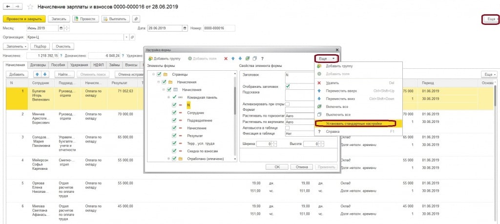 Все стало компактнее, все данные вошли по ширине и теперь не нужно прокручивать роликом. Но если вдруг у Вас что-то не получилось или данная настройка оказалась все-таки не удобной, Вы всегда можете вернуться к стандартным настройкам. Для этого также нужно по кнопке «Еще» запустить «Изменить форму», а в открывшемся окне снова обратиться к кнопке «Еще» и установить стандартные настройки: