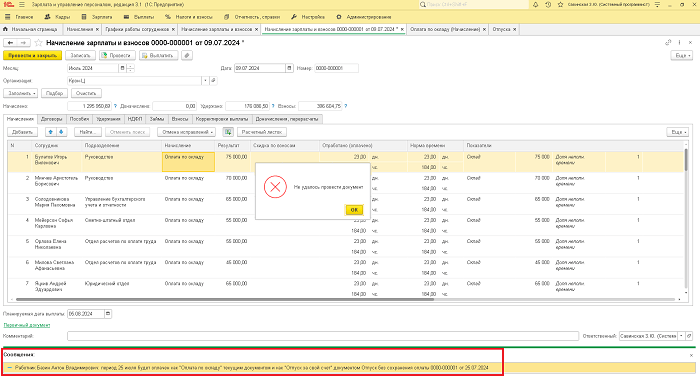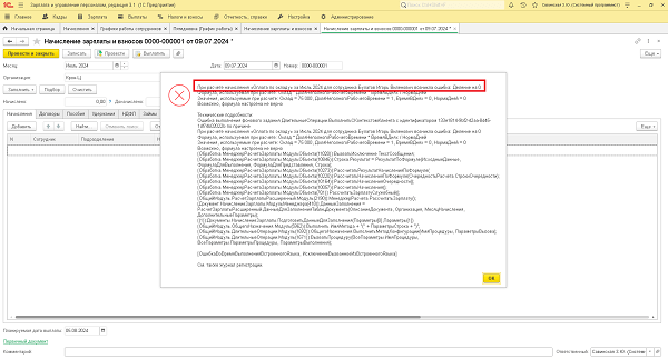2. Неправильно настроенный приоритет начислений может привести к ошибке при проведении документа «Начисление зарплаты и взносов».