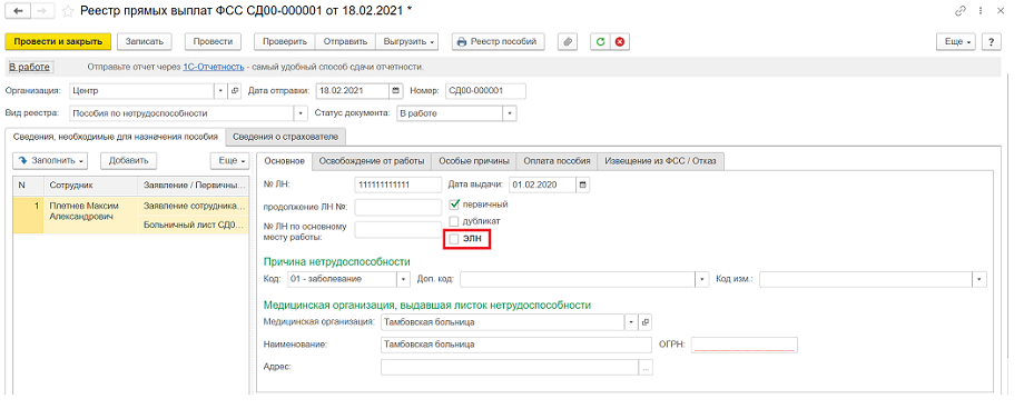 5) Реестр для ЭЛН со всеми заполненными реквизитами готов к отправке