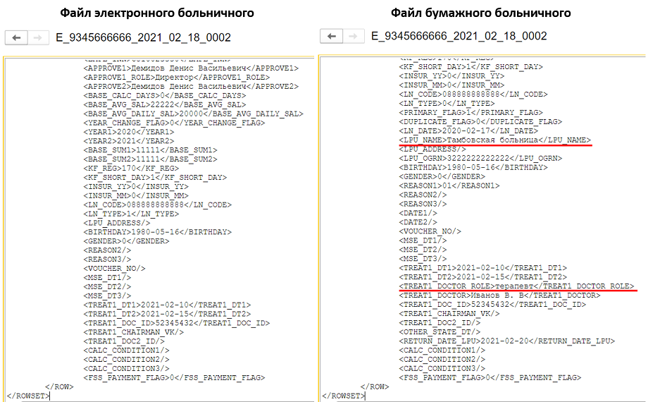 3) При выгрузке версии с бумажным больничным можно увидеть, что все данные заполнены