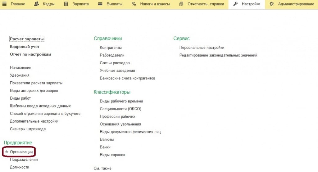 Налоговым агентом является работодатель. Он обязан исчислить, удержать и перечислить налог. На основании этого, мы с вами делаем вывод, что в программе НДФЛ у нас будет принимать три состояния: исчисленный, удержанный и перечисленный. И очень важно понимать после ввода каких документов НДФЛ соответствует то или иное состояние. Этому будут посвящены другие статьи. Что касаемо конкретно работодателей, то в программе сведения по ним хранятся в справочнике «Организации», если у вас в базе одна организация, то «Реквизиты организации».