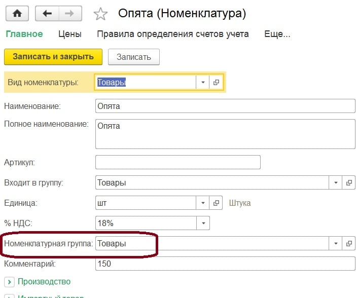 Это очень важно определить верную номенклатурную группу, особенно если у вас есть реализация вашей продукции и покупных товаров. Далее важно правильно оформить список номенклатурных групп в разделе “Налоги и отчеты”.