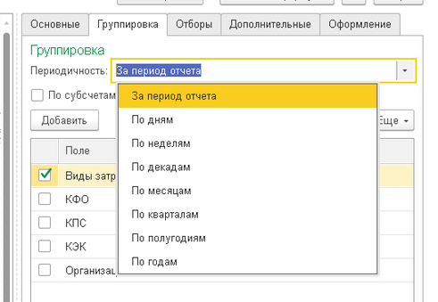 Данные в отчете можно вывести с дополнительной группировкой оборотов По дням, По неделям, По декадам, По месяцам и далее, вплоть до По годам.