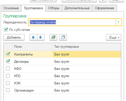 С группами – будут выходить, как наименование Контрагента, так и группа, в которую входит.