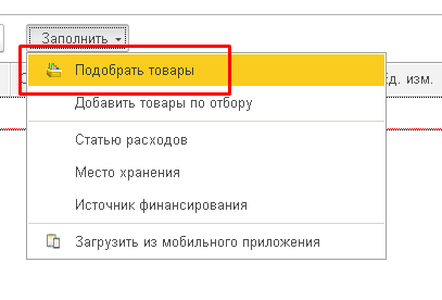 На вкладке «Товары» по кнопке «Заполнить» можно выбрать необходимые лекарственные средства.